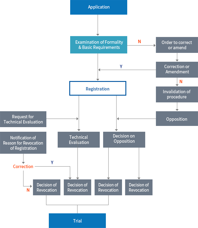 Since there is no substantive examination concerning novelty, inventive step, or industrial applicability under the non-examination system, there will be an examination of the basic requirements to avoid and eliminate minimum irrational elements in the application before registration.